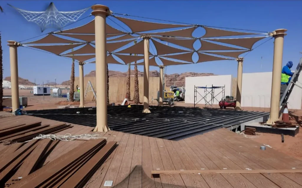 مظلات سيارات، مظلات حدائق وجلسات خارجية، سواتر بمختلف أنواعها (قماش، شرائح حديد، وخشب)، تنفيذ هناجر ومستودعات، تركيب الشينكو والساندوتش بانل، بيوت شعر فاخرة، مظلات مسابح، مظلات شد إنشائي، مظلات خزانات مياه، بالإضافة إلى تصميم وتنفيذ درج حديد بأعلى جودة وتشطيبات احترافية.