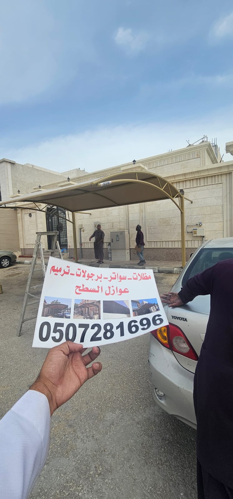 بعدها: تركيب المظلة بعناية لضمان الأمان والجمال.